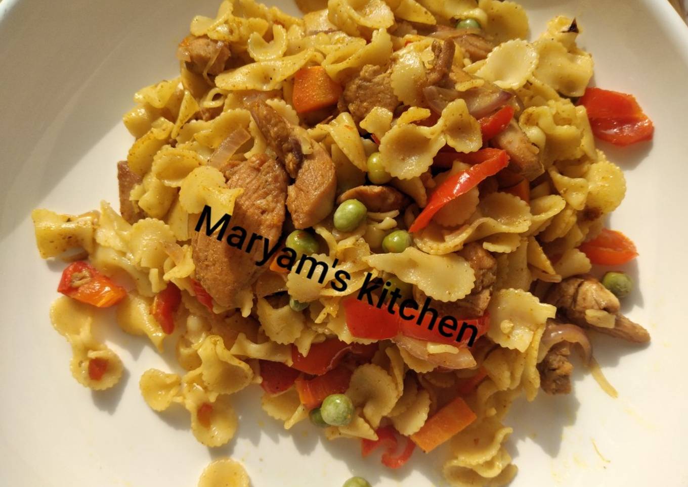 - In a pan add in lil oil, add in the shredded chicken and stir fry until it's soft. Add in all the chopped veggies and stir fry, add in your seasoning cubes and spices. And finally the pasta allow to cook 5 minutes or so. But do not over cook it. Enjoy!