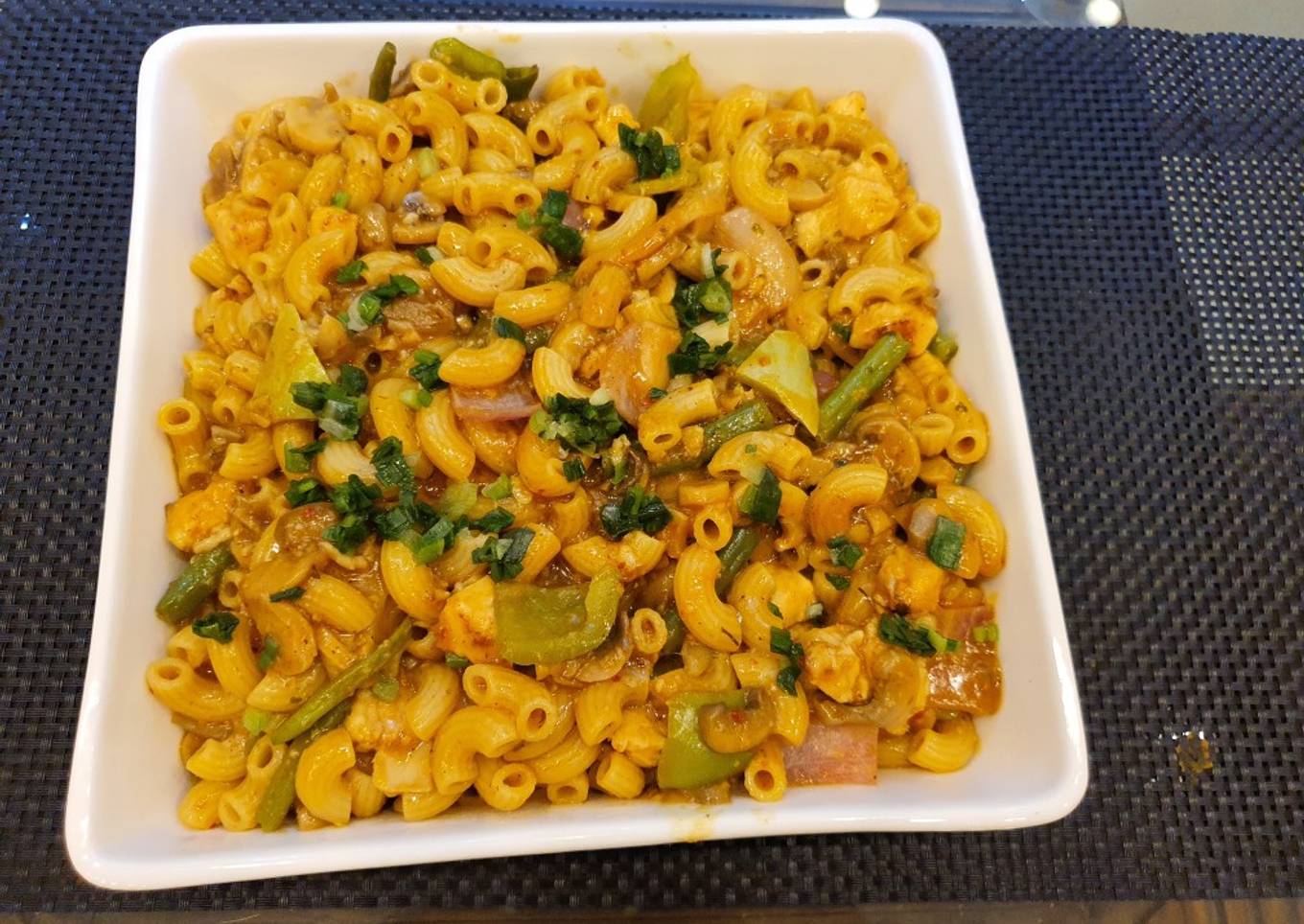 - Mix water with 1 tbp corn flour,dissolve and add to mixture. And cook until thick.Add boiled 0asta and mix.Cook for 2 minutes and stove off.Garnish with spring onion.