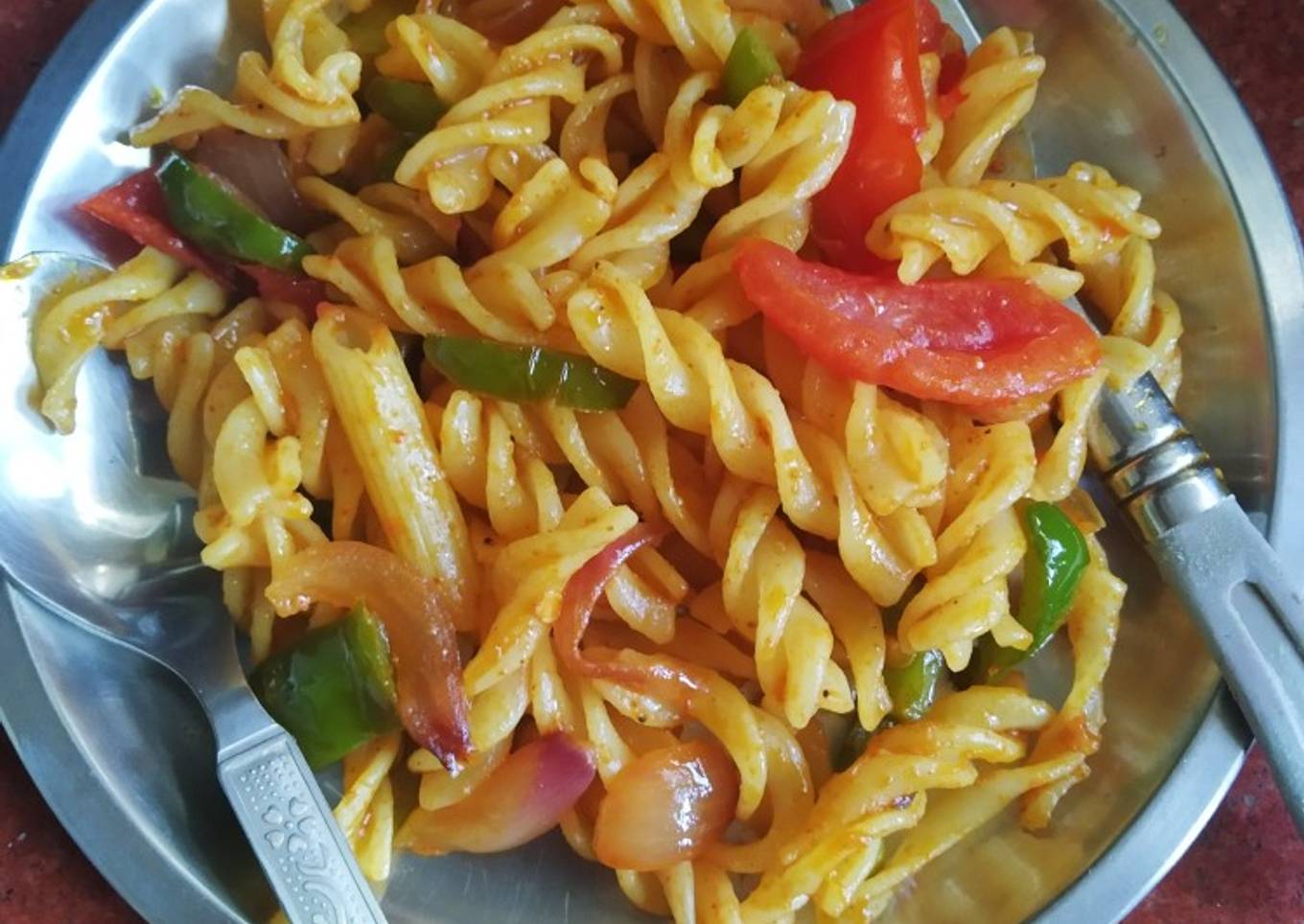 - Add boiled pasta in sauted masala and mix well. Serve it.