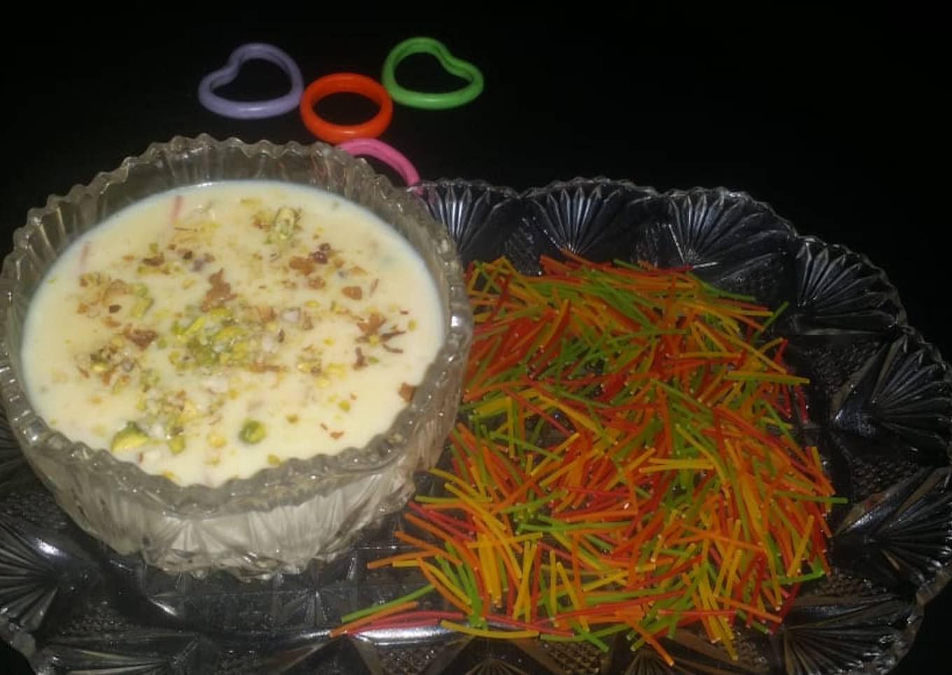 - Ab 1/4 cup dhood main 2 tsp vanilla casturd dal ke mix karin ab issy pasta waly dhood main dal ke mix karin 2 boil any dain ab chula band kar dain or bowl main nikal lain phir uper thory se badam pista dal ke serve karin or enjoy karin. 😍