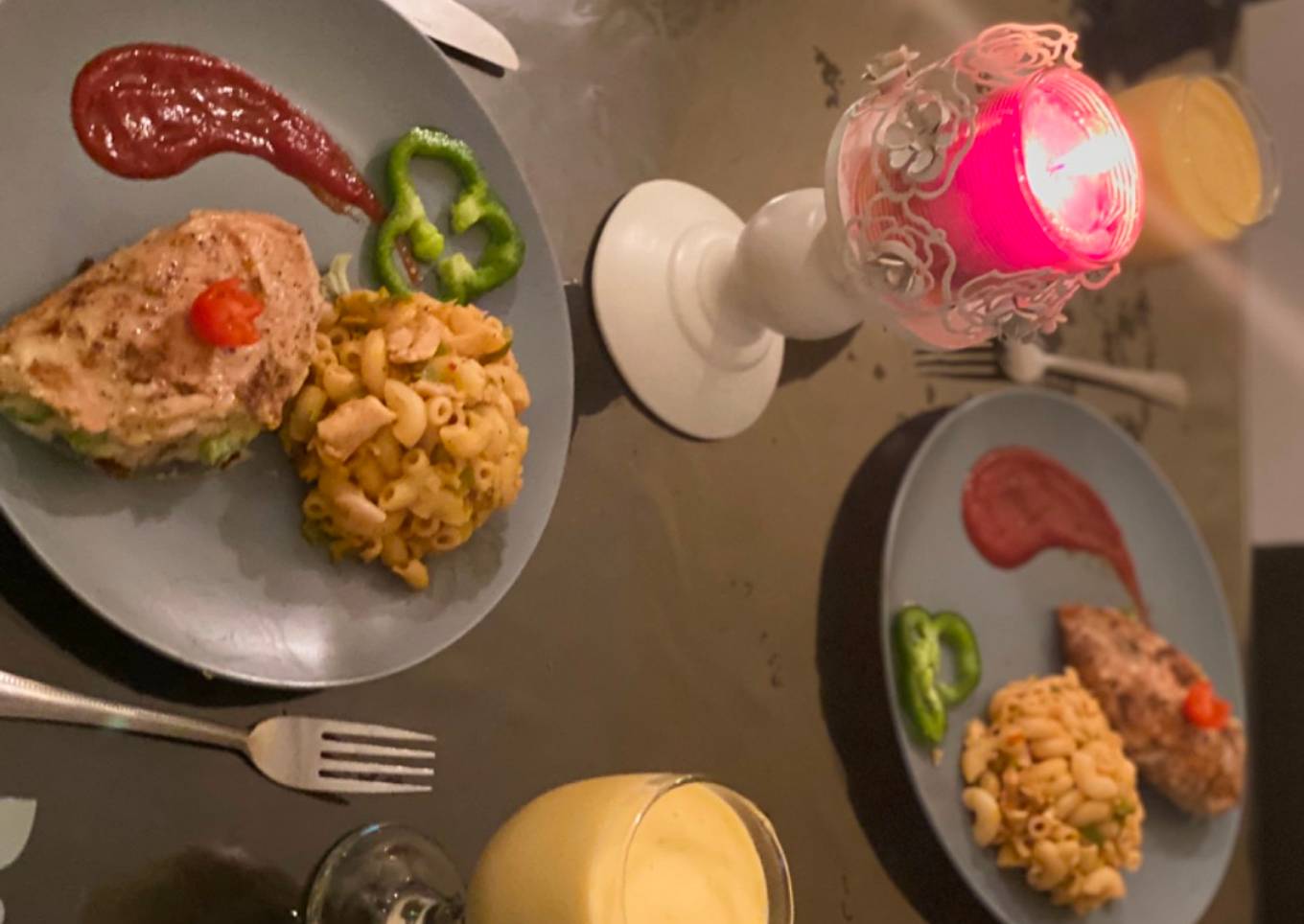 - Ab ap ka veg pasta, Stuffed chicken steak and mango milkshake ready hai, serve with any chilli sauce or ketchup.enjoy with your partner