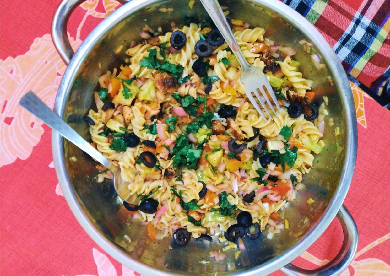 Ingredients and spices that need to be Take to make Chicken pasta salad: