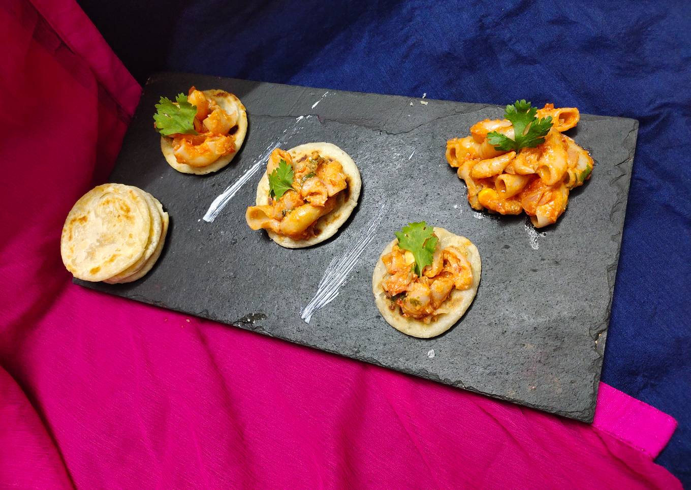 Instructions to make to make Indian gravy pasta with mini paratha bites