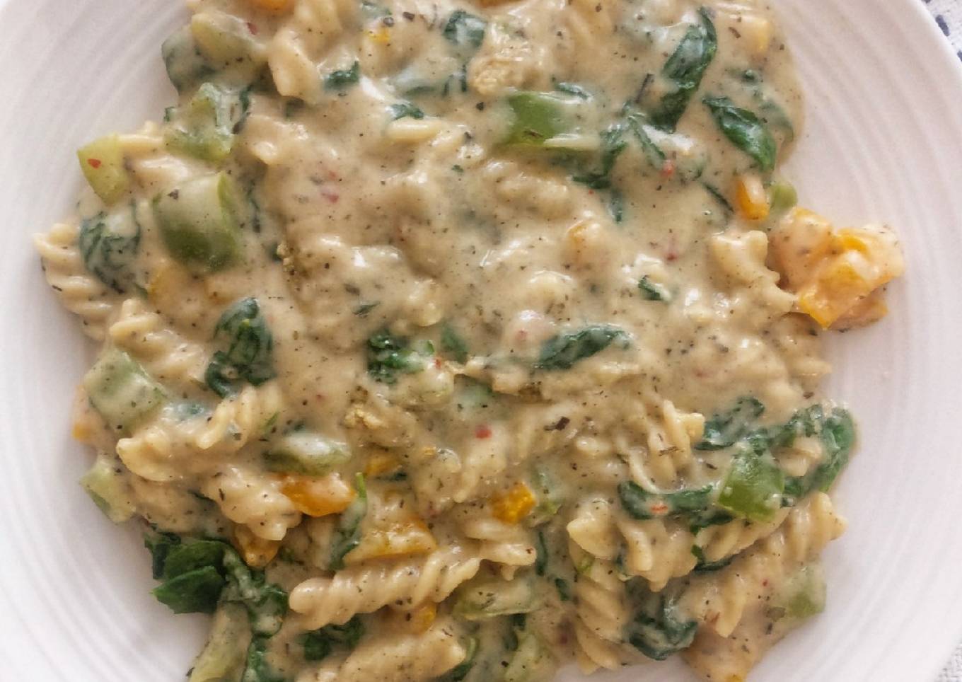 This easy quick recipe is creamy and cheesy and has some veggies to crunch on.