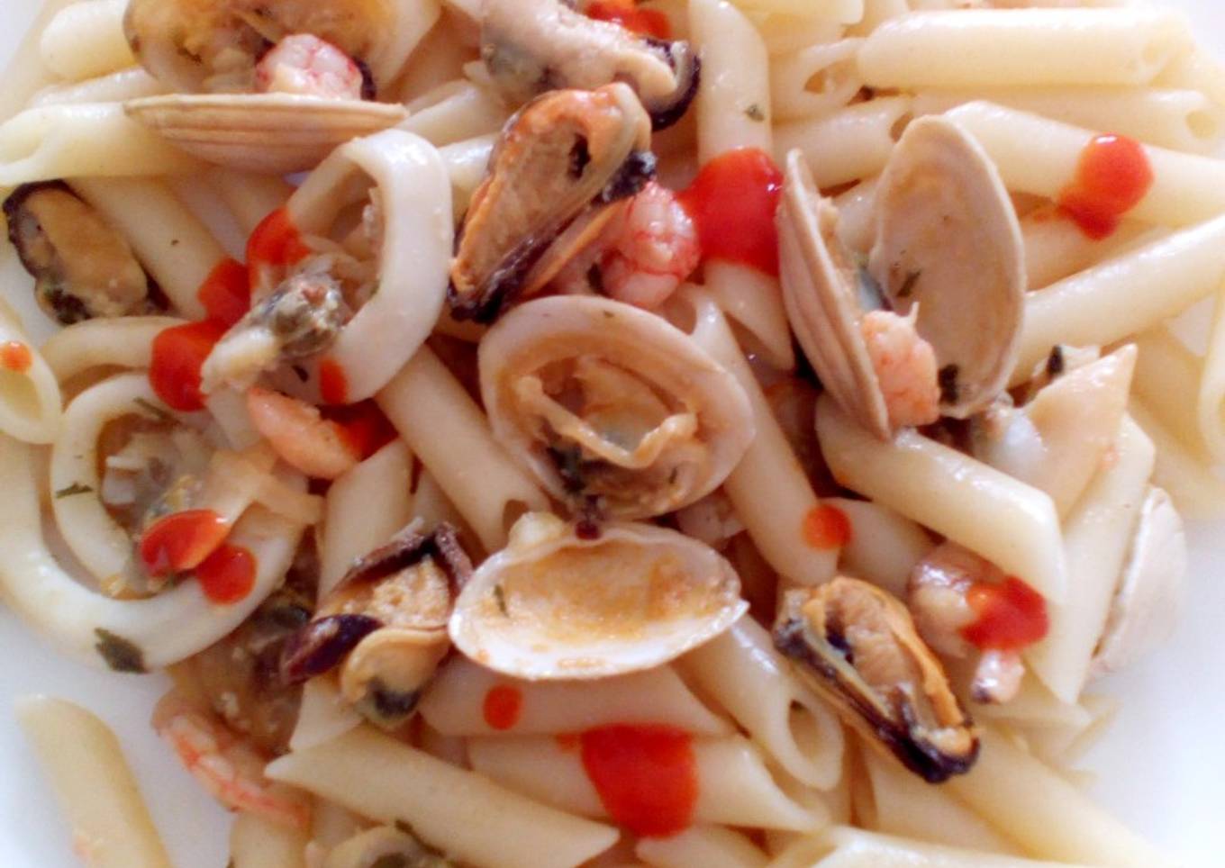 - 6: When the seafood is ready, pour it in the pasta and mix well. 7: Serve and enjoy… With a side salad and crusty bread! 8: See more photos & videos of this recipe on my social networks & don´t forget to share it with your friends too!