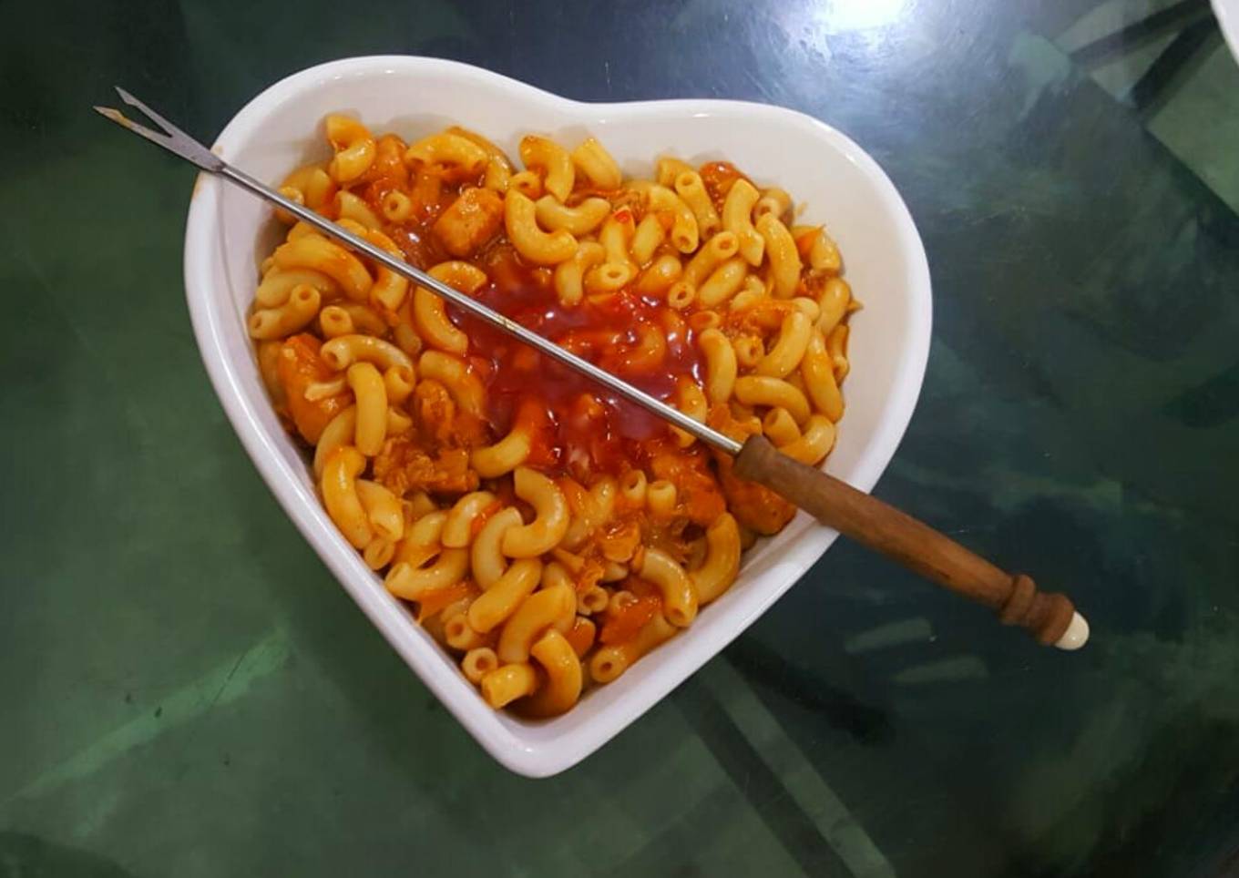- In a pan add oil,ginger garlic paste, chicken,and cook for 5-6 minutes then add salt,red chilli powder black pepper and soya sauce and mix well then add tomato ketchup and mix then add some water and again mix well then add boiled pasta in it and mix well on top sprinkle some oregano and enjoy ๐๐