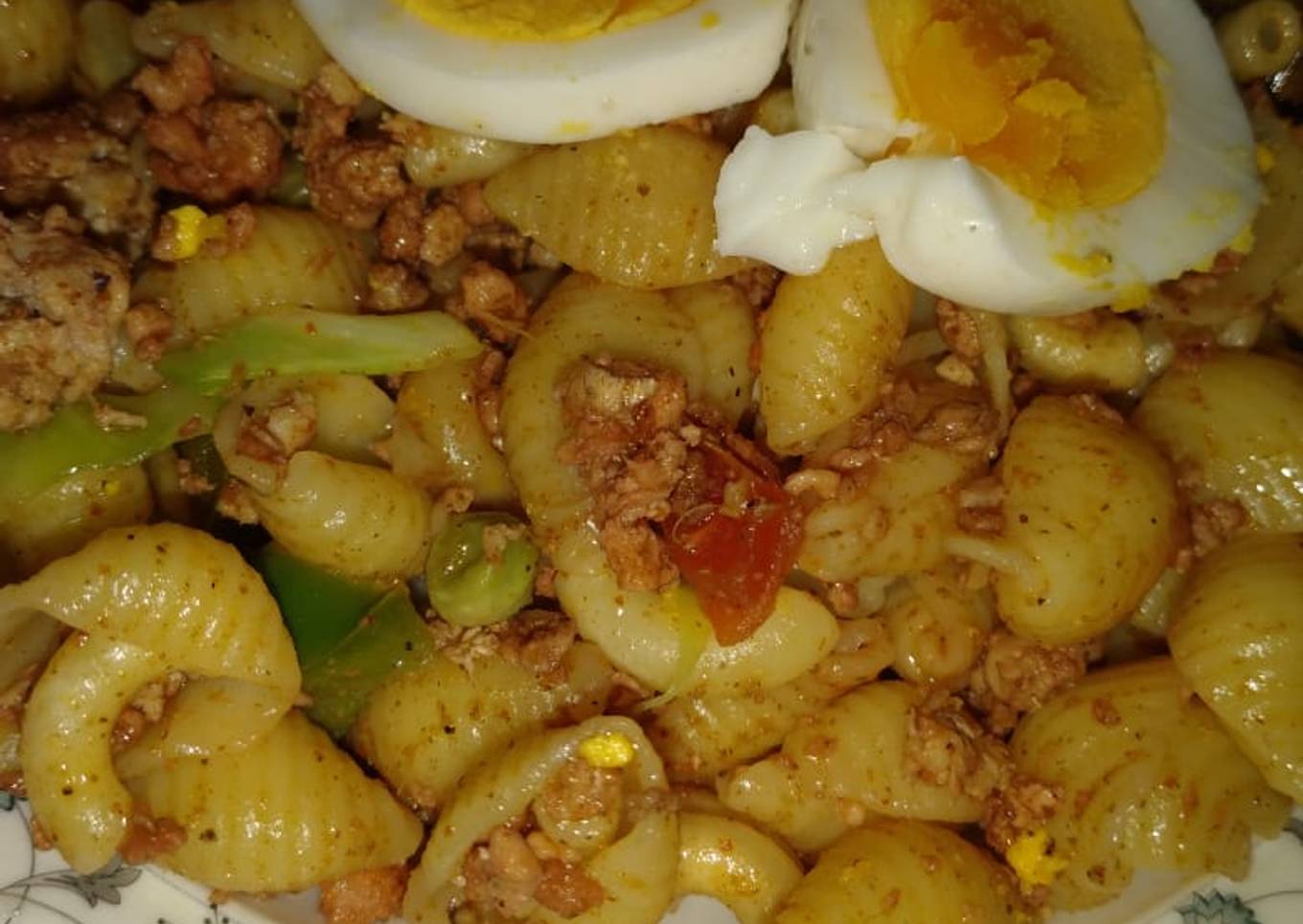 - Ab pasta add kar mix karain boil egg cut kar ke add karain 5 min ke liye low flame par rakain after 5 min flame off and serve karain