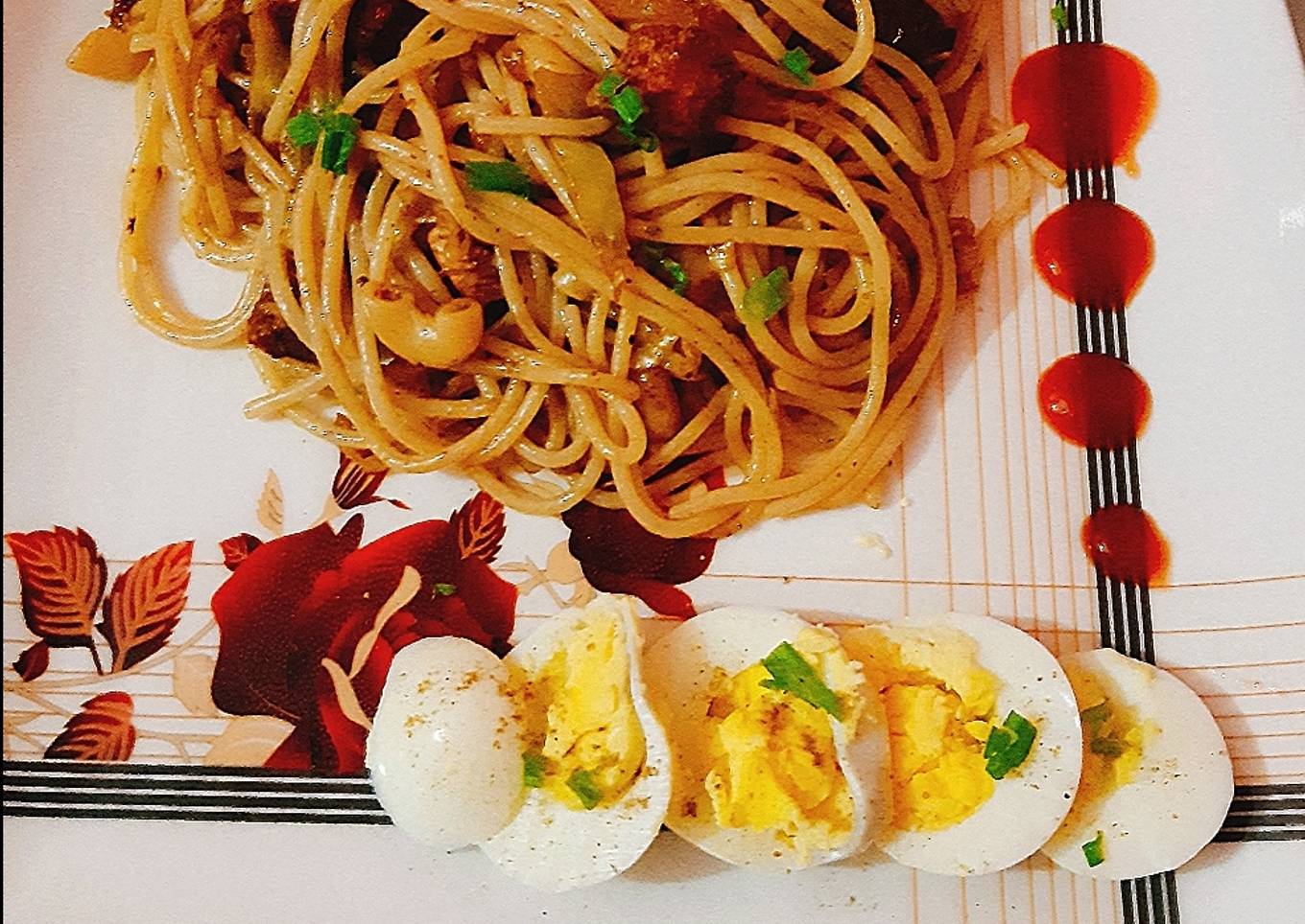 - Ab chicken mein pasta mix kry...boil eggs ketchup ke sath serve kry..